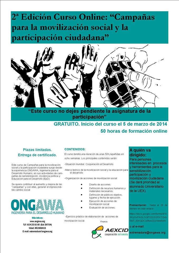 2ª Edición Curso Online: “Campañas para la movilización social y la participación ciudadana” organizado por ONGAWA_ Extremadura