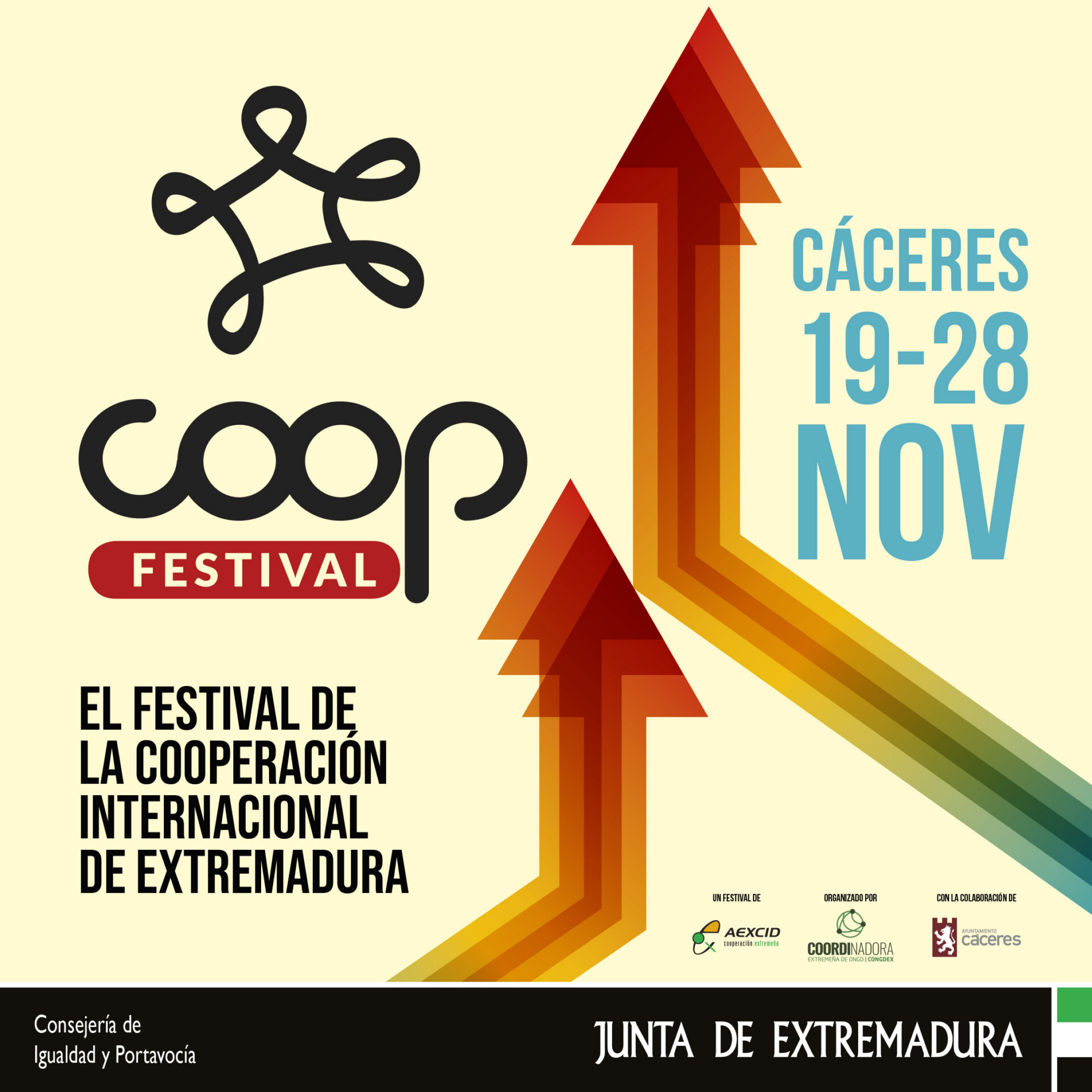 Os presentamos COOPFESTIVAL, festival de la Cooperación Internacional de Extremadura. Este año tendrá como escenario la ciudad de Cáceres, desde el 19 al 28 de Noviembre. Es un proyecto de la AEXCID, ejecutado por CONGDEX, en colaboración con el Ayuntamiento de Cáceres, y al que además se suman, de una u otra manera, las diferentes ONGD’s que componen el tejido de la cooperación extremeña, así como otras asociaciones y colectivos locales o movimientos sociales.