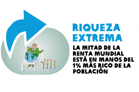 Hoy la mitad de la renta mundial está en manos del 1% más rico de la población, cuya riqueza asciende a 110 billones de dólares. Esta cifra es 65 veces mayor que el total de la riqueza que posee la mitad más pobre de la población mundial.