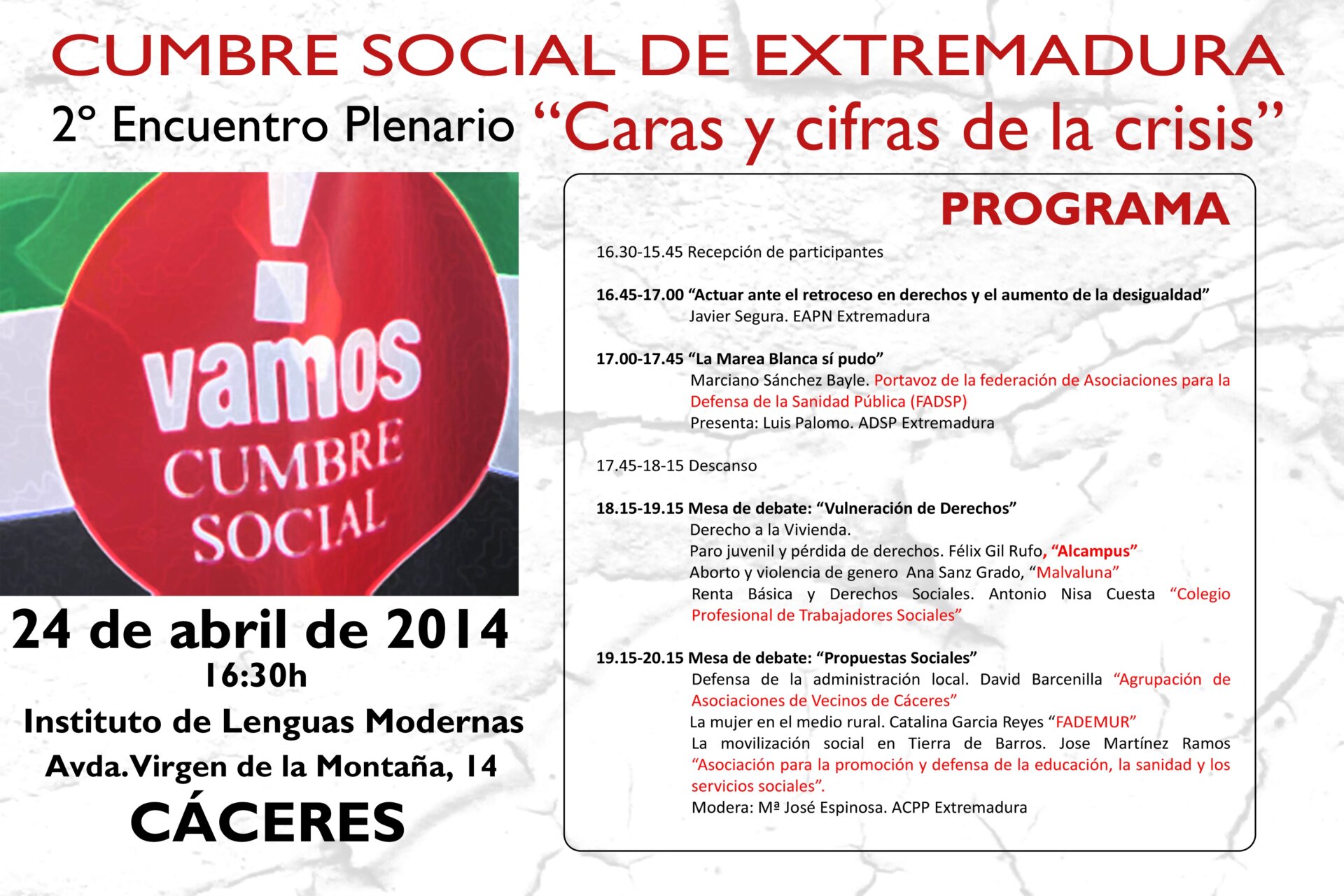 La Cumbre social de Extremadura organiza sus II Jornadas de encuentro bajo el título  “ Caras y cifras de la crisis”.