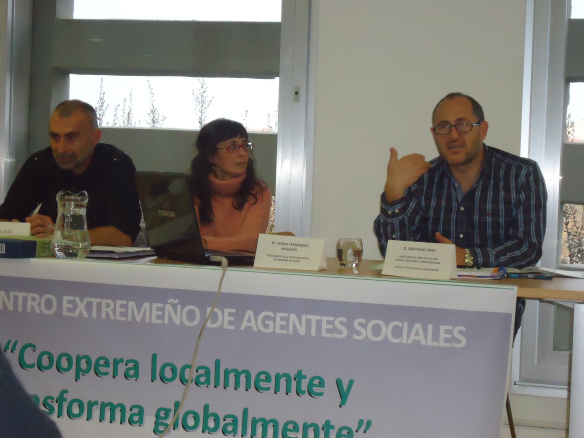 Mérida, 18 de diciembre de 2013.- Una treintena de personas del ámbito de lo social de Extremadura (ONGD`s, asociaciones, políticas, sindicatos) se reunió en la tarde de ayer en el II Encuentro Extremeño de Agentes sociales organizado por el grupo de incidencia de la Coordinadora Extremeña de ONGD`s (CONGDEX) en el Palacio de Congresos de Mérida. Tras la bienvenida de la Presidenta de la CONGDEX, Sonia Fernández Holguín, se ha desarrollado una mesa de experiencias de participación social de éxito con Santiago Anes, Director de Acción Social, Igualdad y Participación del Ayuntamiento de Rivas Vaciamadrid (Madrid) y Roberto Ballesteros, Presidente de la ONG Ideas.
