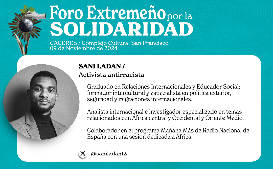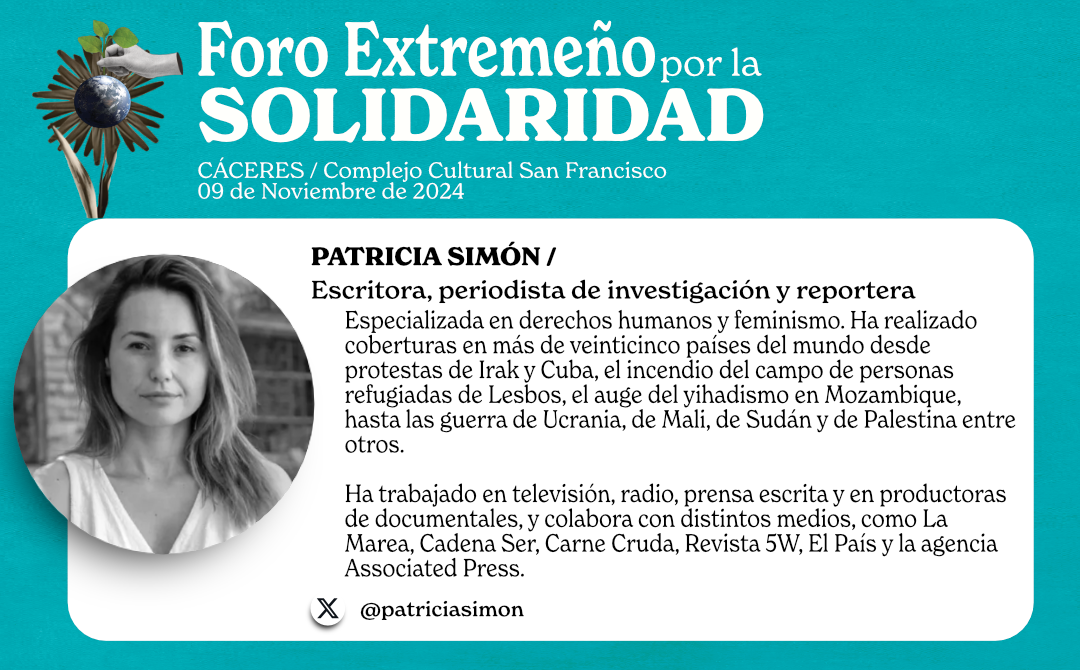 El Foro será el espacio para la construcción de un Pacto Extremeño por la Solidaridad, para ello contará con la participación de representantes de la Coordinadora de Organizaciones para el Desarrollo de España, Colectivos en Lucha Extremadura y el Movimiento de Mujeres Migrantes de Extremadura, entre otros; así como un panel de personas expertas como la escritora y reportera de investigación y periodista especializada en derechos humanos, Patricia Simón y el investigador y especialista en política exterior y temas migratorios, Sani Ladan.